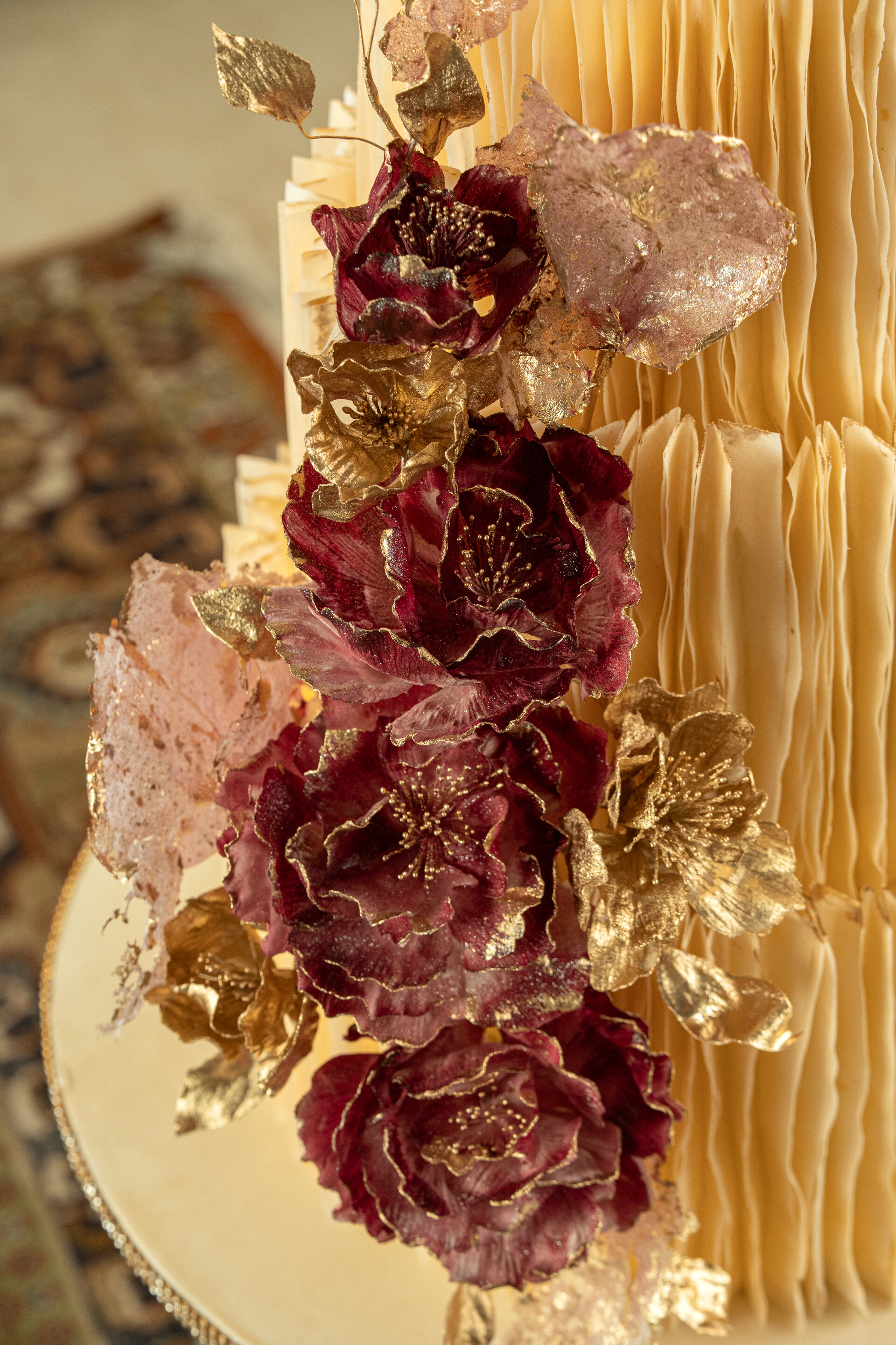 Introducing to you Deliciae’s new wedding cake collection in the wafer paper technique. This technique allows for a completely new look for my custom cakes, with ruffles being the central theme. Vibrant colours, exotic light flowers, and ofcourse that touch of gold makes this collection an exciting one.